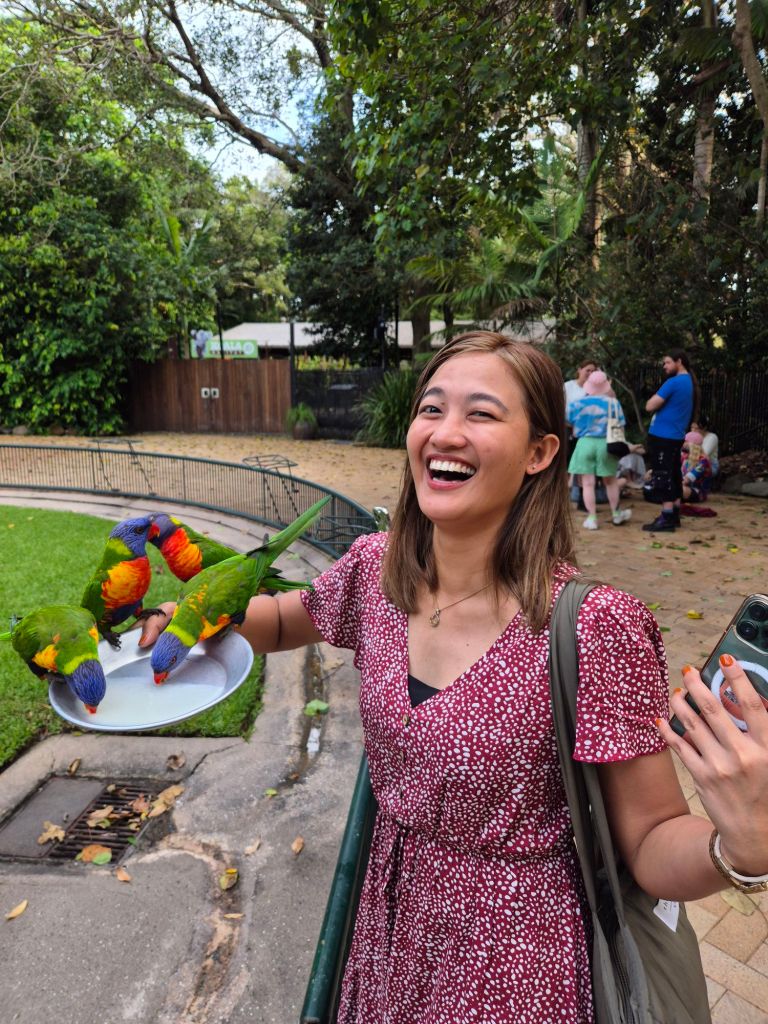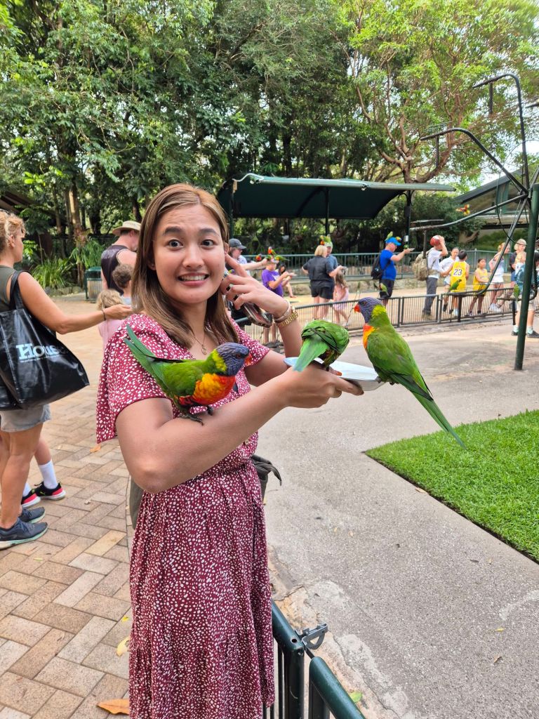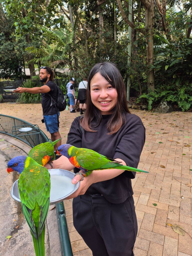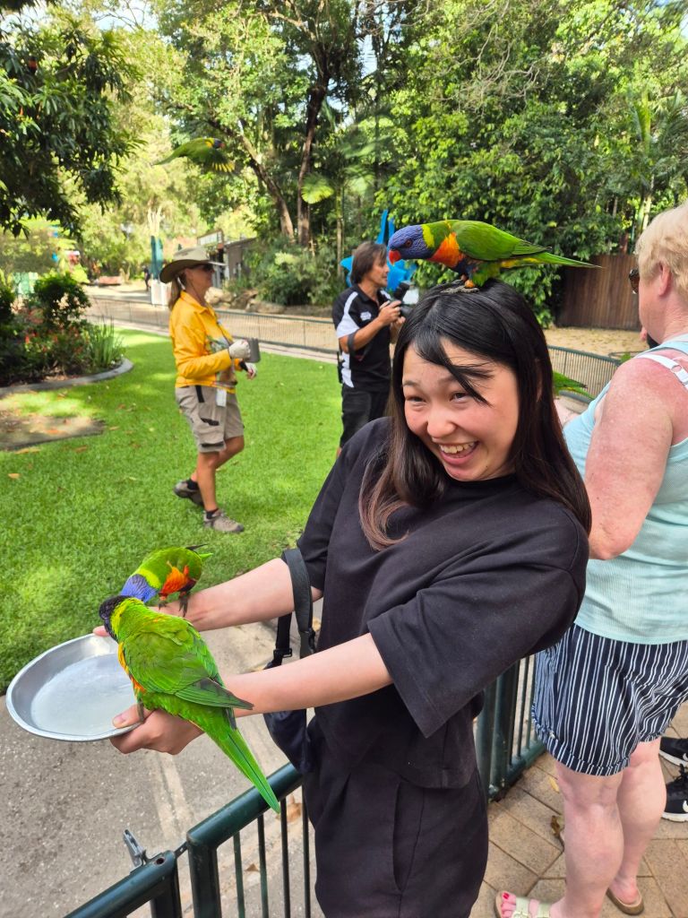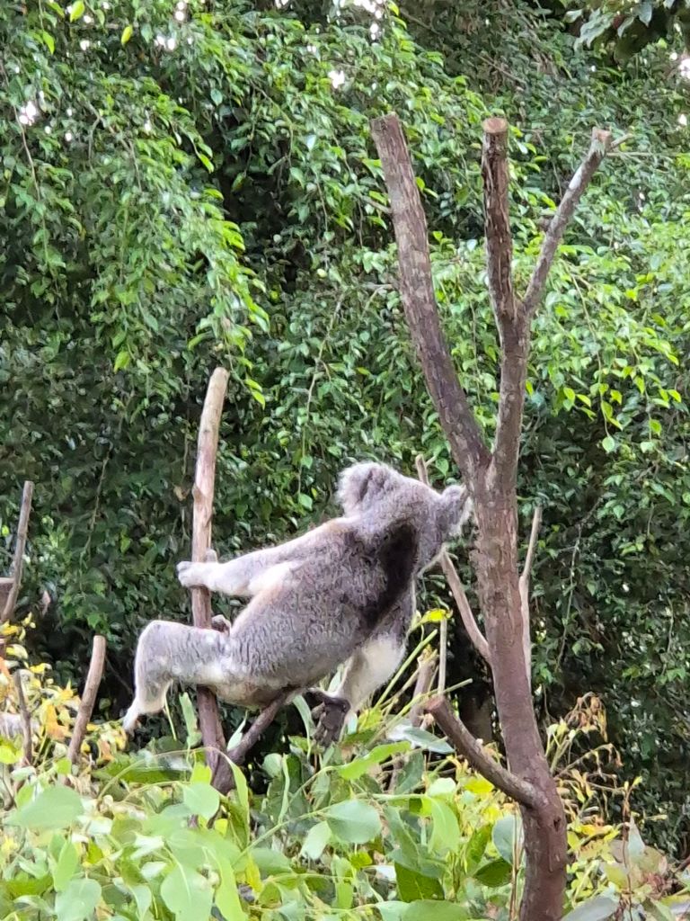 I got pooped on! It’s always a fun time with international visitors. We got to peek a baby and one older koala, too!