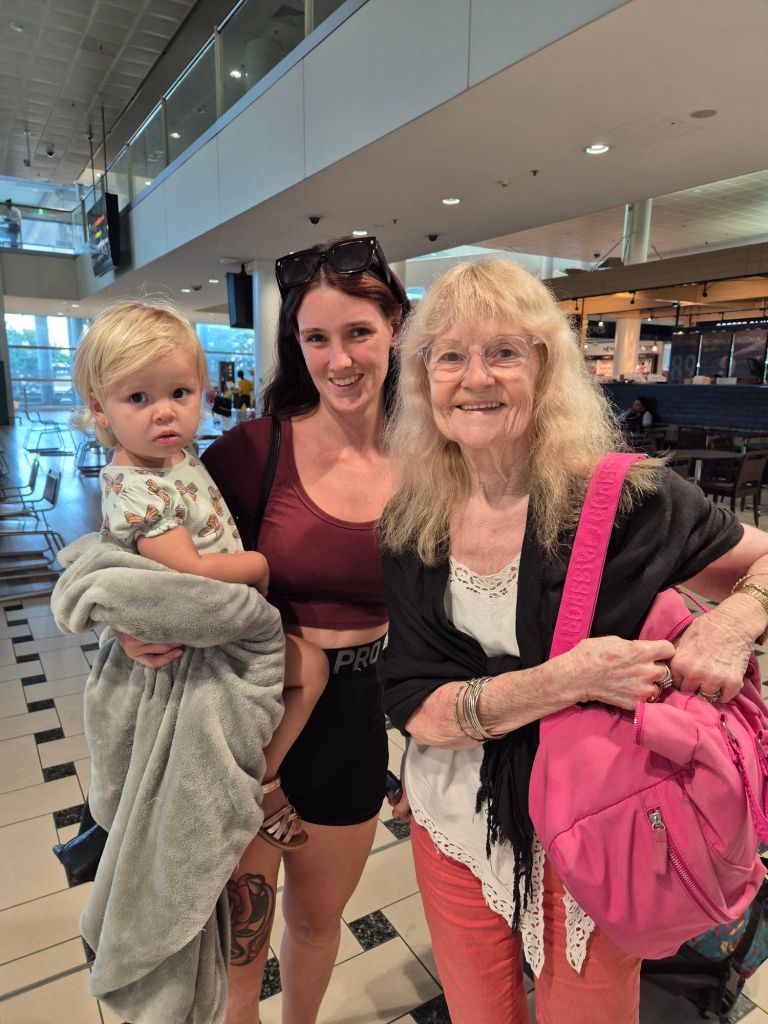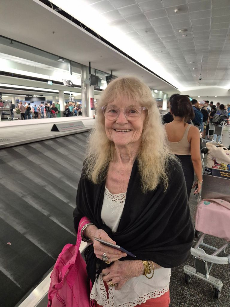 Back on the Gold Coast after long transit in Bali Posted bygordiestravelsJanuary 27, 2025Posted inUncategorized In the Immigration line at Bali, Lisa asked me if I could watch over her 80+ year old Mum, Sandy, on the way to Brisbane. Safely handed over to the grand daughter Share this: Share on X (Opens in new window) X Share on Facebook (Opens in new window) Facebook Like Loading... Related Published by gordiestravels Retired Royal Australian Air Force Officer, travelling the world. View more posts